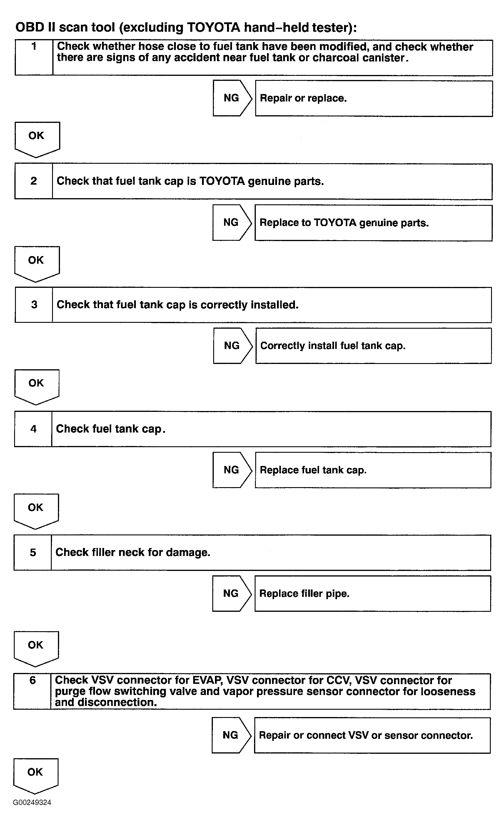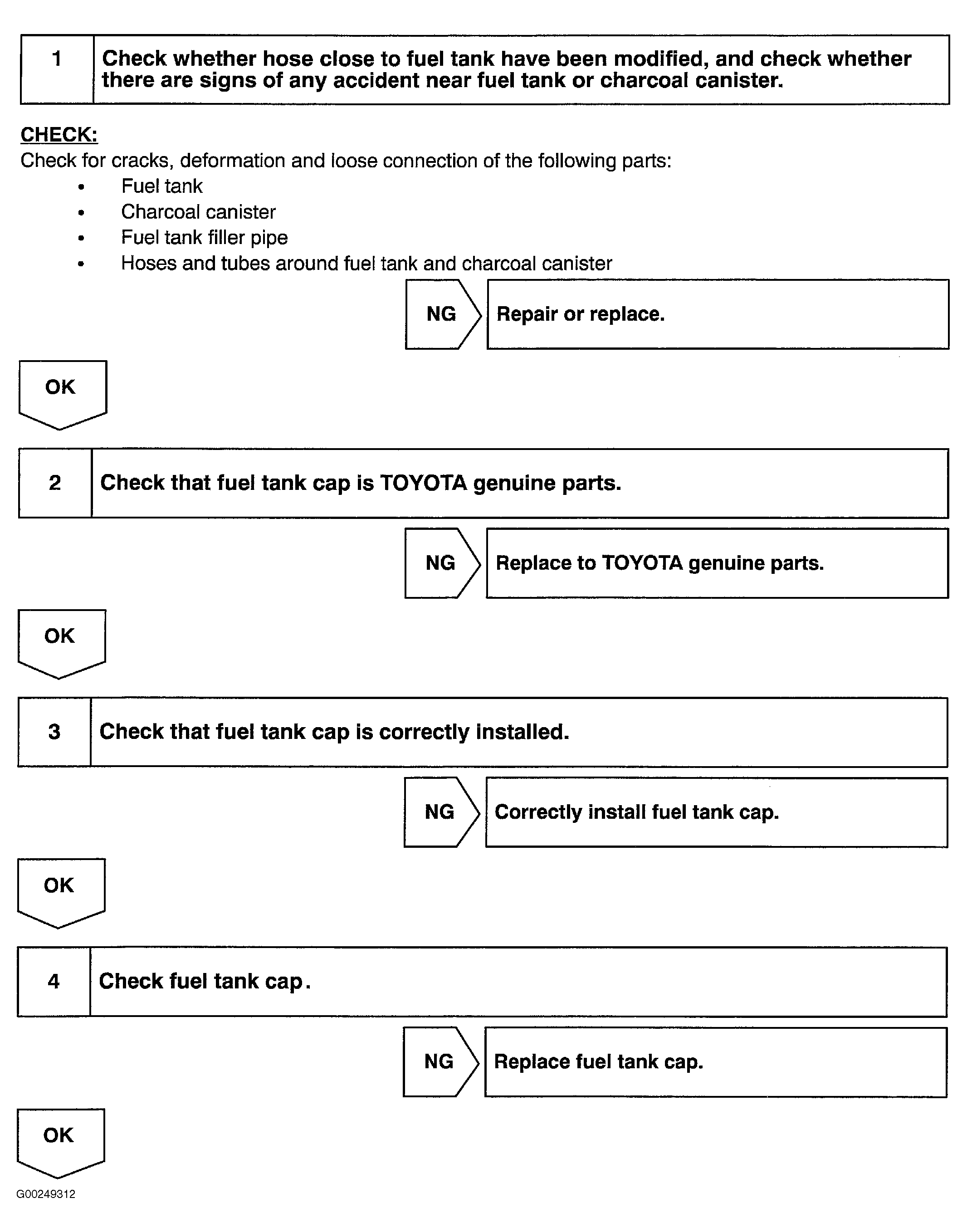 Home >> Toyota >> 2004 >> RAV4 Base, AWD, Automatic >> Repair and Diagnosis >> External Pages >> Different car >> Section 129 (Engine Control System Self Diagnostics) >> Diagnostic Tests >> DTC P0441: EVAP Emission Control System Incorrect EVAP Purge Flow Or P0446: EVAP Emission Control System Vent Control Malfunction >> Diagnosis & Repair