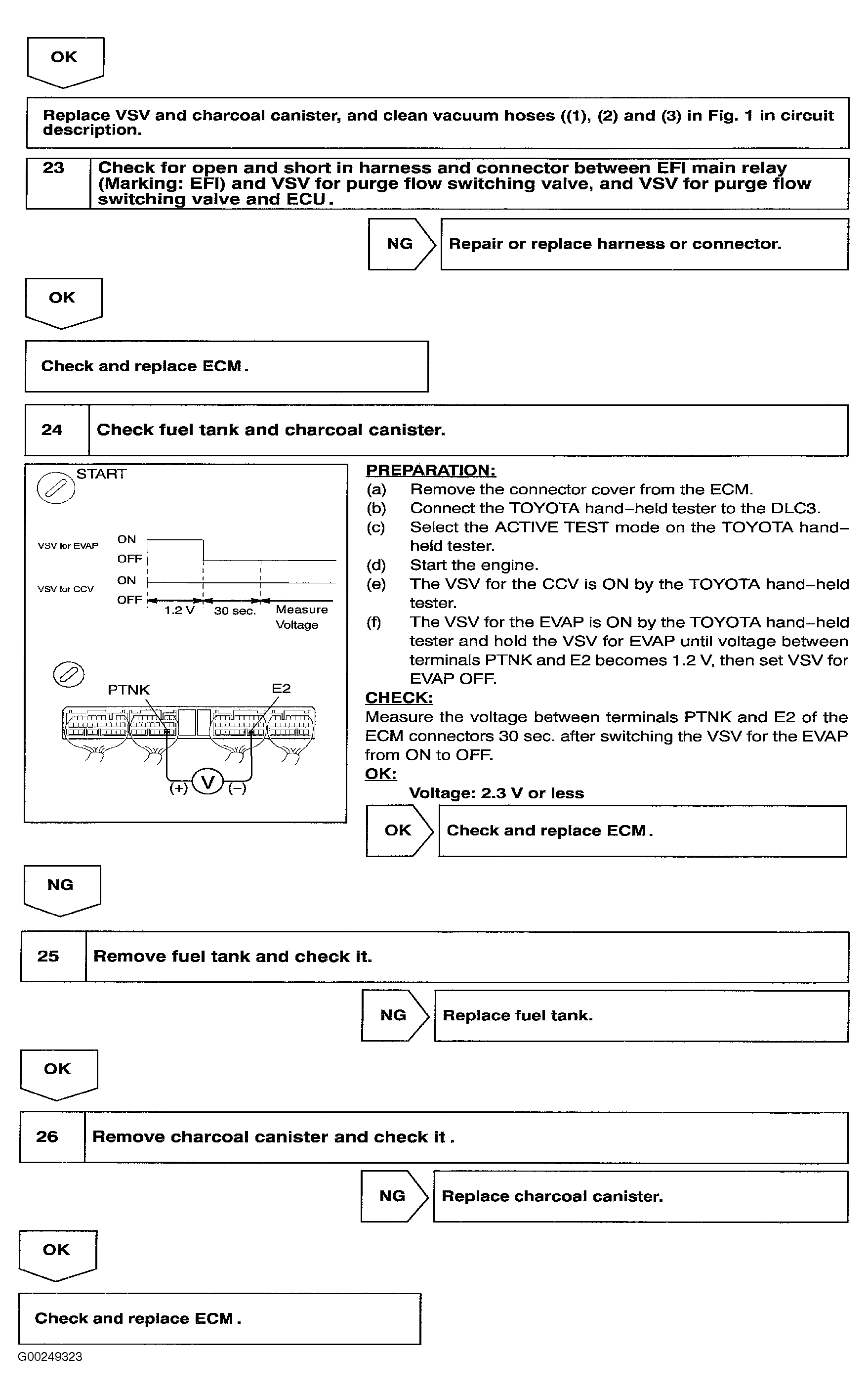 Fig 7: DTCs P0441 & P0446 Diagnostic Procedure Using Hand Held Tester (Steps 23-26)
