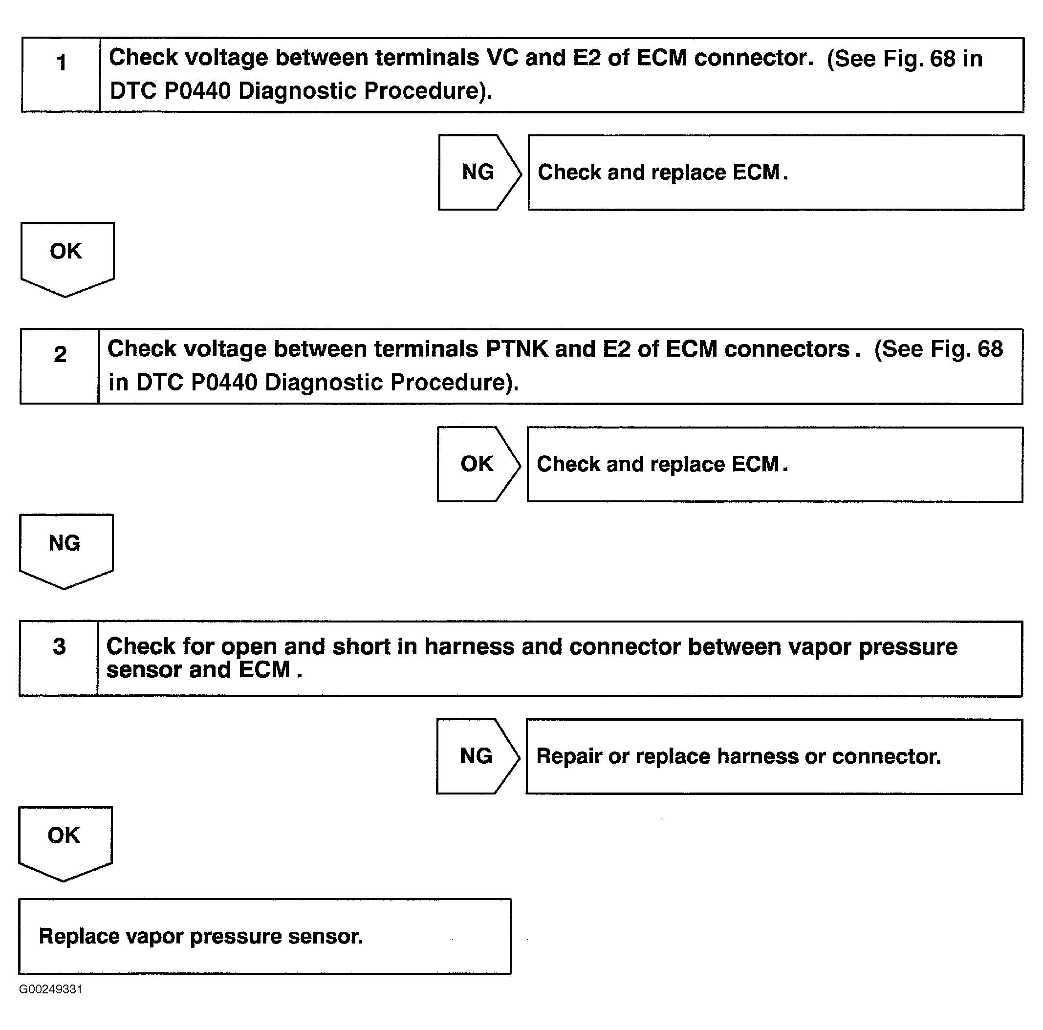 Home >> Toyota >> 2004 >> RAV4 Base, AWD, Automatic >> Repair and Diagnosis >> External Pages >> Different car >> Section 129 (Engine Control System Self Diagnostics) >> Diagnostic Tests >> DTC P0450: EVAP Emission Control System Pressure Sensor Malfunction Or P0451: EVAP Emission Control System Pressure Sensor Range/Performance >> Diagnosis & Repair