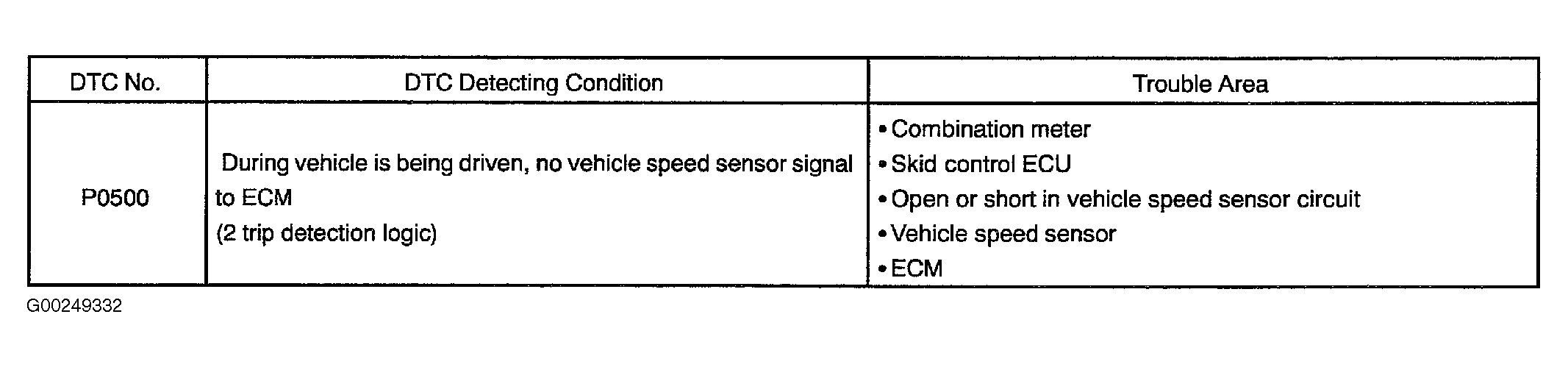 Home >> Toyota >> 2004 >> RAV4 Base, AWD, Automatic >> Repair and Diagnosis >> External Pages >> Different car >> Section 129 (Engine Control System Self Diagnostics) >> Diagnostic Tests >> DTC P0500: Vehicle Speed Sensor Circuit >> Possible Causes
