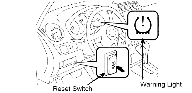 Do not push the reset switch without adjusting tire inflation pressure. Otherwise, the low tire pressure warning light may not come on even if the tire pressure is low, or it may come on when the tire inflation pressure is actually normal. If you push the reset switch while the vehicle is moving, initialization is not performed.