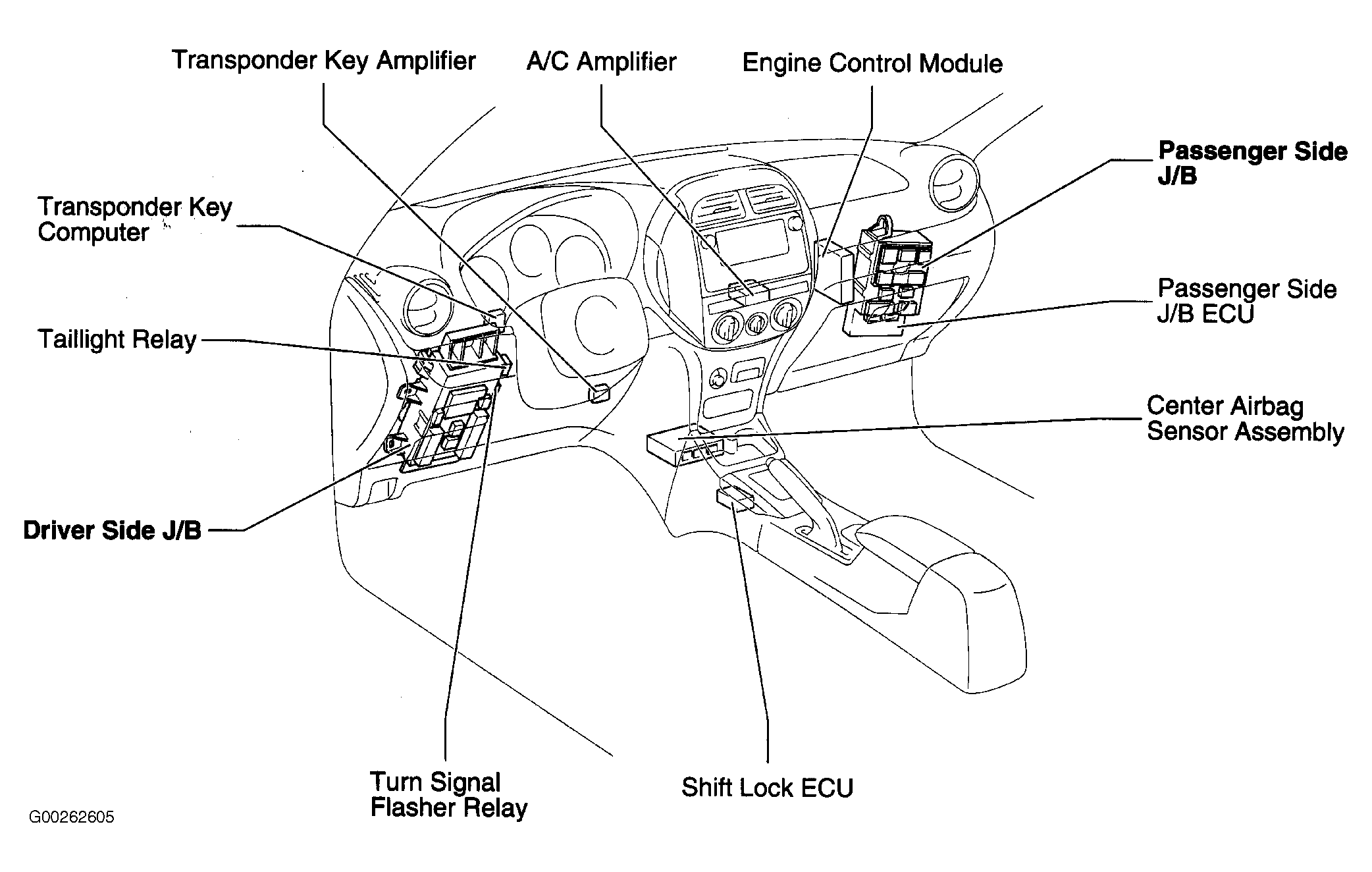 | Passenger Side J/B | Behind right side of dash. See Figure. |