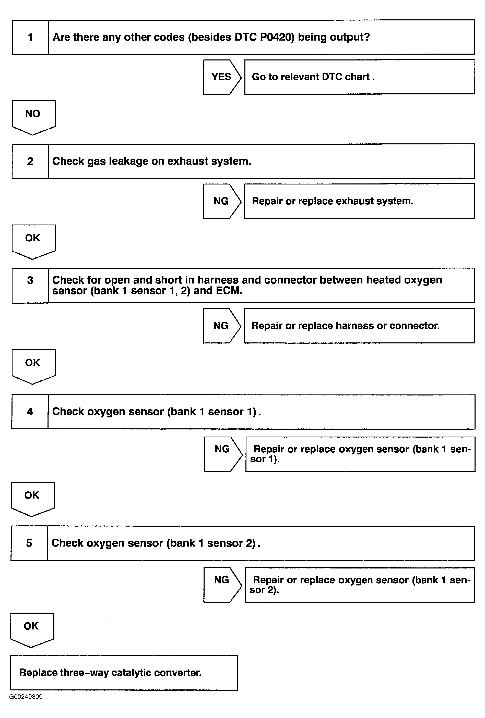 Home >> Toyota >> 2004 >> RAV4 Base, AWD, Standard >> Repair and Diagnosis >> External Pages >> Different car >> Section 129 (Engine Control System Self Diagnostics) >> Diagnostic Tests >> DTC P0420: Catalyst System Efficiency Below Threshold >> Diagnosis & Repair