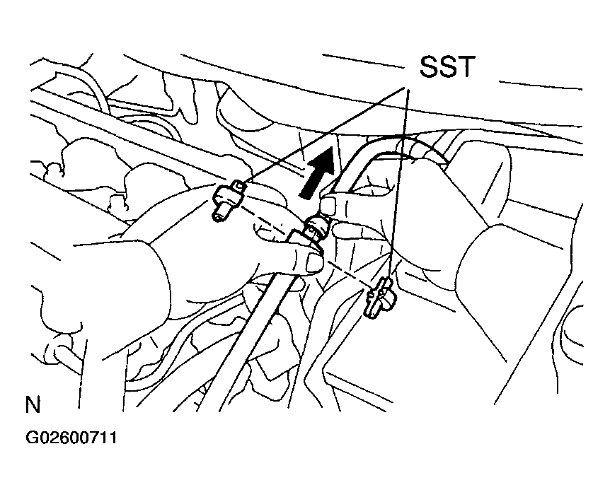 - Get the metallic connector of the fuel tube assembly, pull it out towards the rear and hold it as it is.
