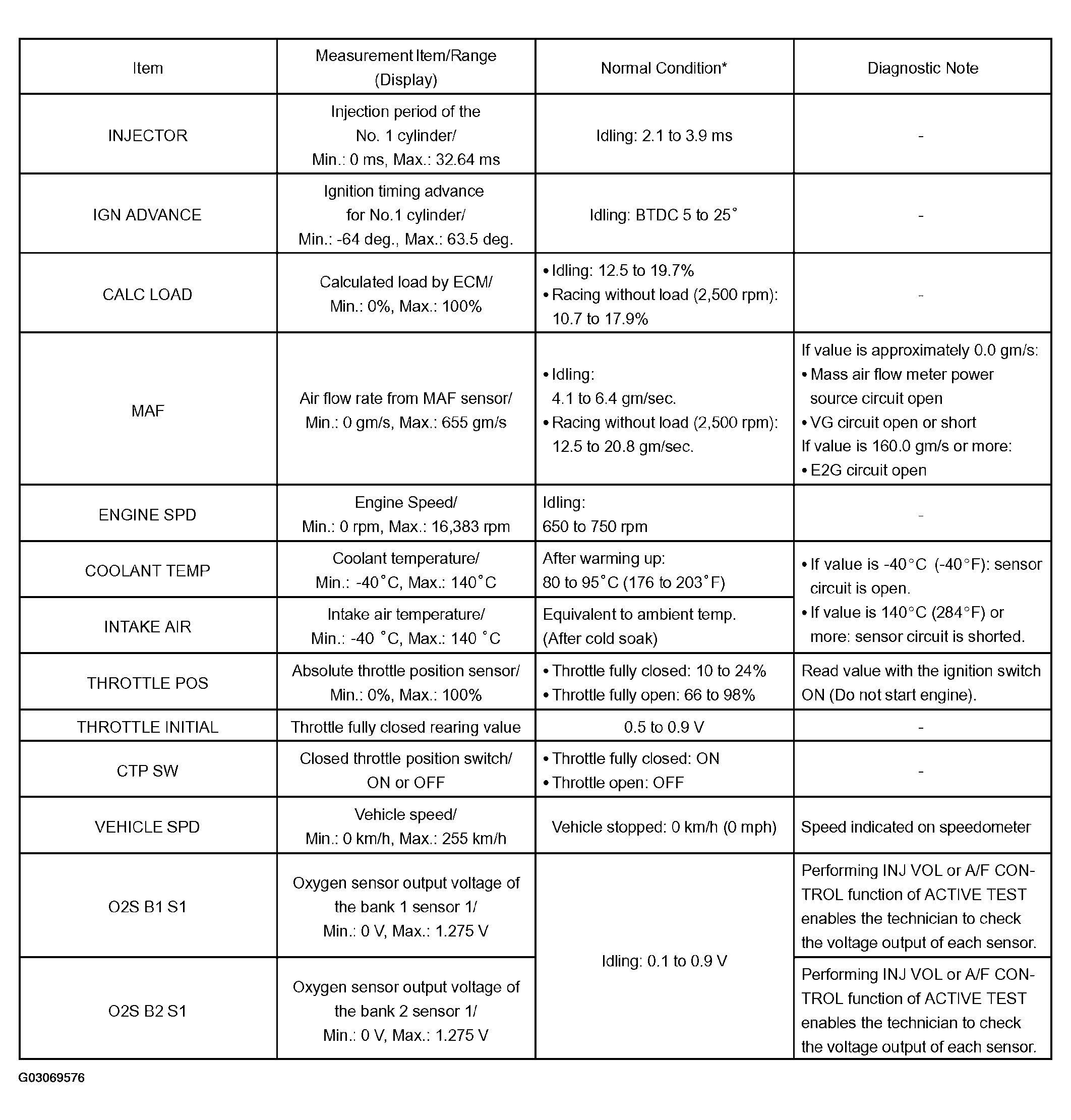 NOTE: In Fig 10 , the values listed under "Normal Condition" are reference values. Do not depend solely on these reference values when deciding whether a part is faulty or not.- Warm up the engine.