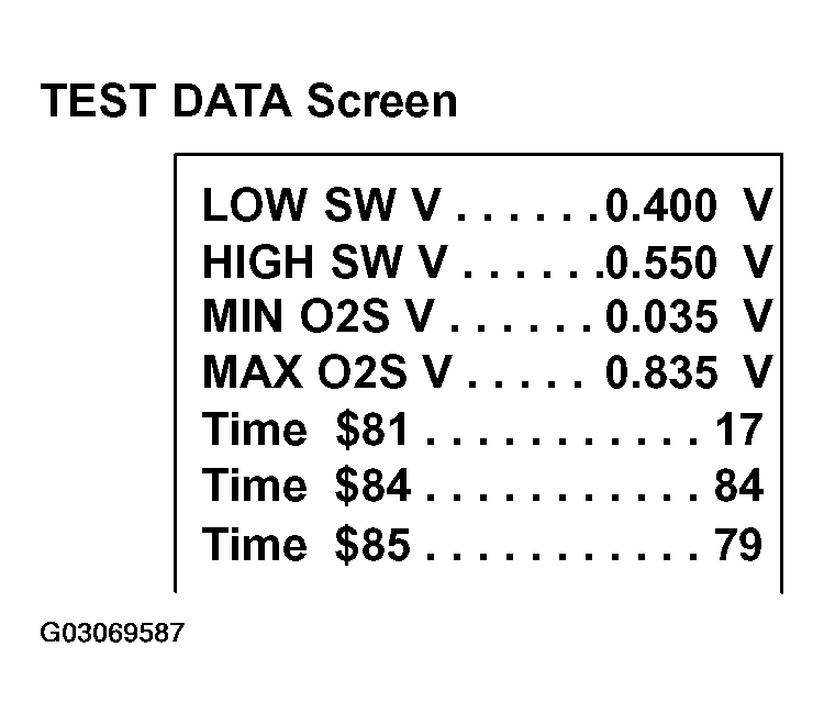 The ECM monitors the O2S in the various items. You can read the monitor result (TEST DATA) of each monitor item using the O2S TEST RESULT. However, the output value of the TEST DATA is the latest "snapshot" value that is taken after monitoring and therefore is not dynamic.