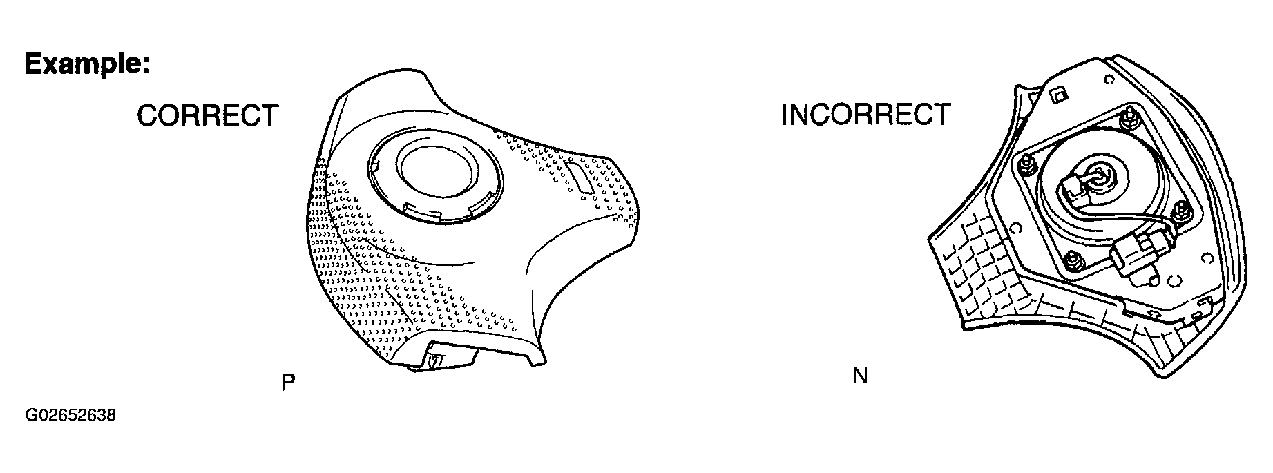 1. When removing the steering wheel pad or handling a new steering wheel pad, it should be placed with the pad top surface facing up see Fig 3 and Fig 4 . Storing the pad with its metallic surface facing upward may lead to a serious accident if the airbag inflates. In addition, do not store a steering wheel pad on top of one another.