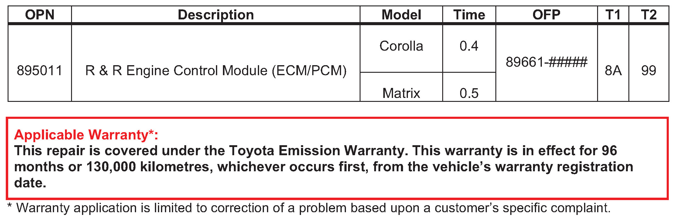 - August 30, 2007: 2007 model year Corolla and Matrix vehicles have been added to Applicable Vehicles.