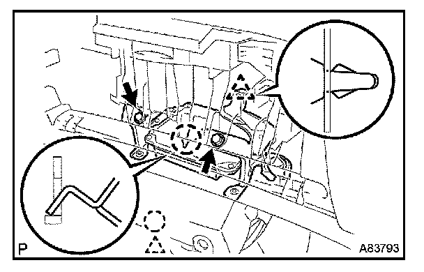 b. Deform the upper part of the glove compartment door assy to release the stoppers.