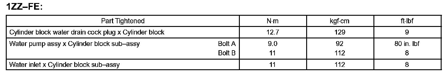 Cooling - Torque Specification: