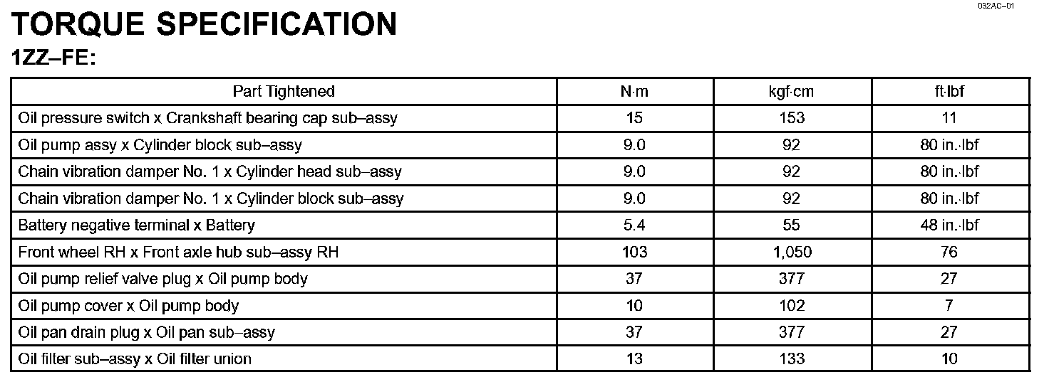 Matrix 2WD L4-1.8L (1ZZ-FE)