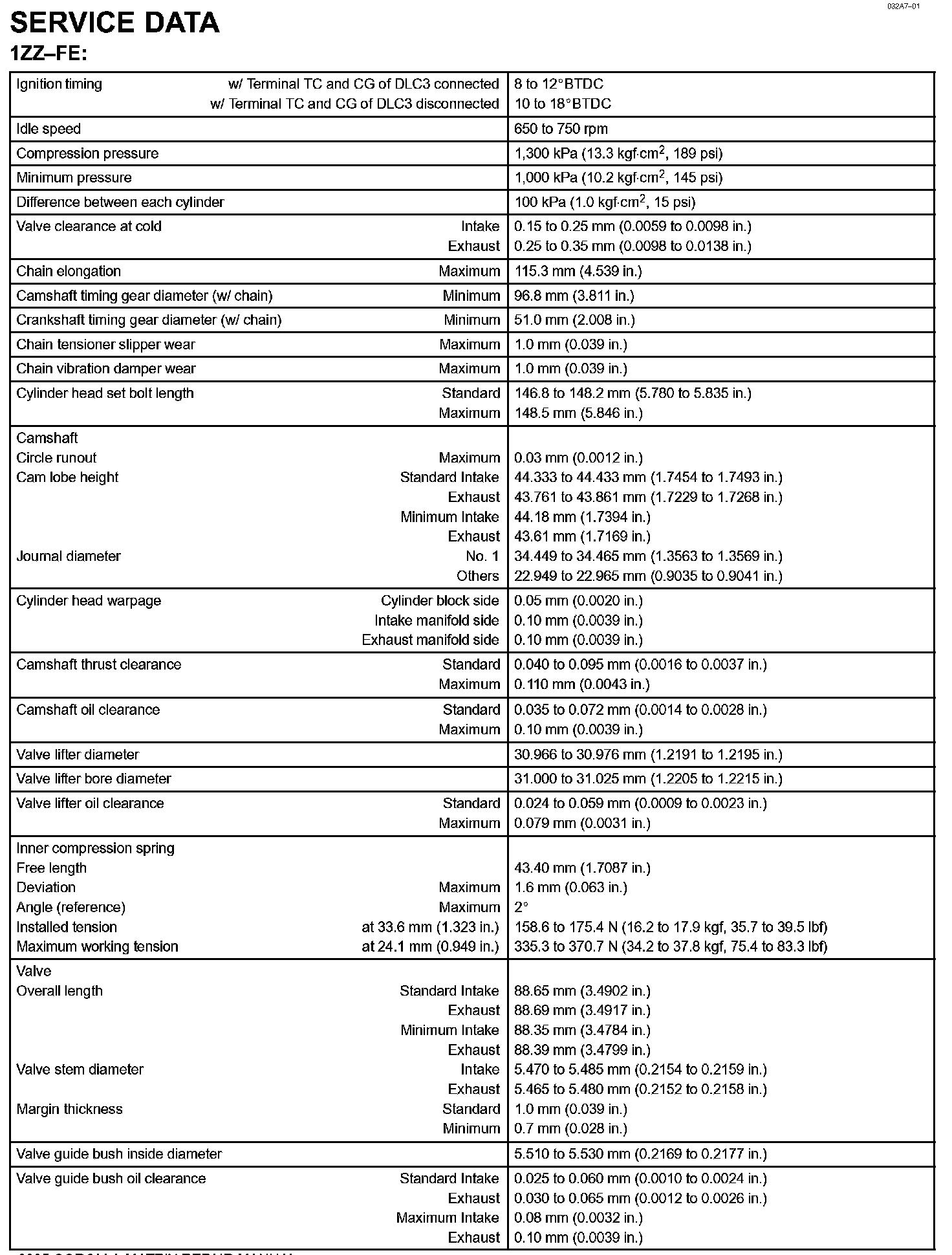 Engine Mechanical - Service Data Part 1: