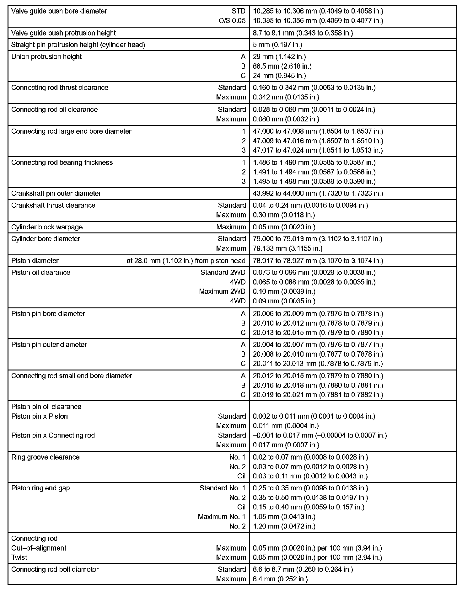 Engine Mechanical - Service Data Part 2: