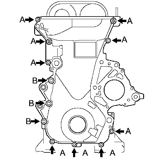 Install the timing chain cover with the 10 bolts and 2 nuts.