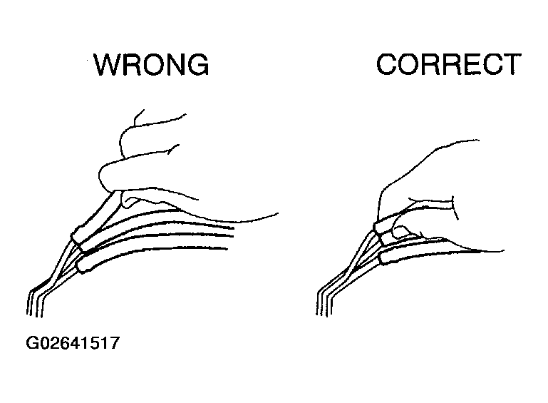- When checking continuity at the wire connector, insert the tester probe carefully to prevent terminals from bending.
