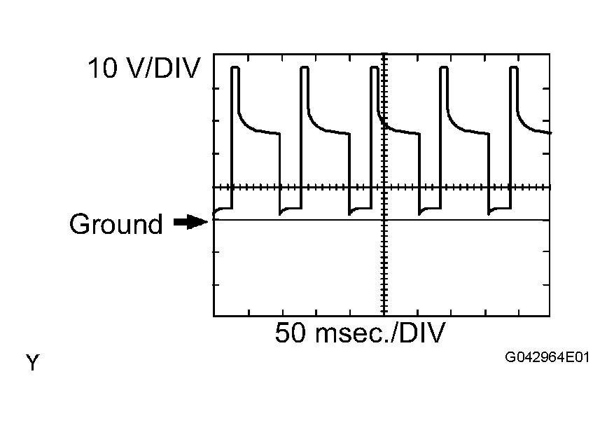 IGT1 (B45-8) - E1 (B47-1) Y - BR Ignition coil with igniter (ignition signal) Idling Pulse generation (see WAVEFORM 6 )
