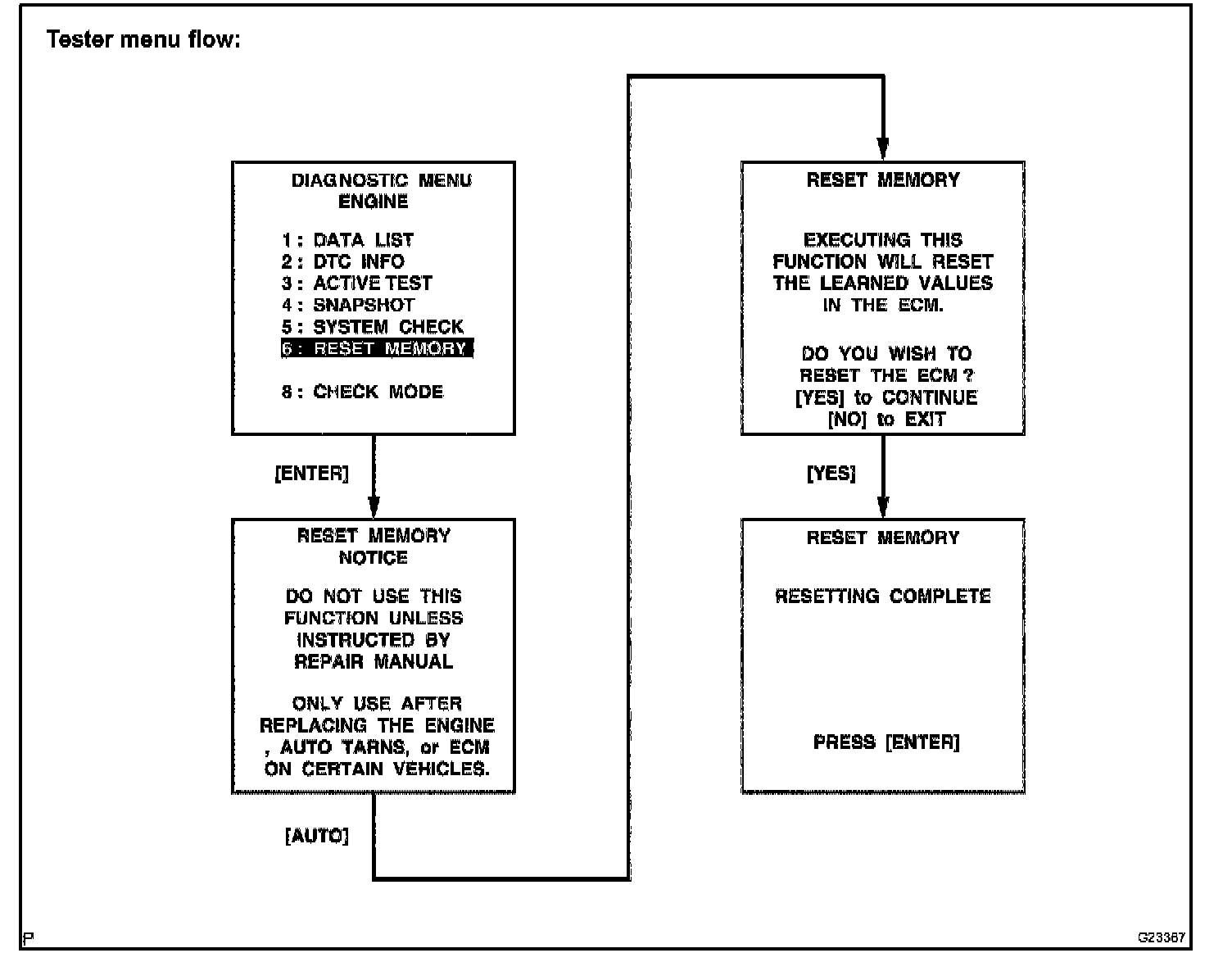 CAUTION: After performing the RESET MEMORY, be sure to perform the ROAD TEST described earlier. Road Test