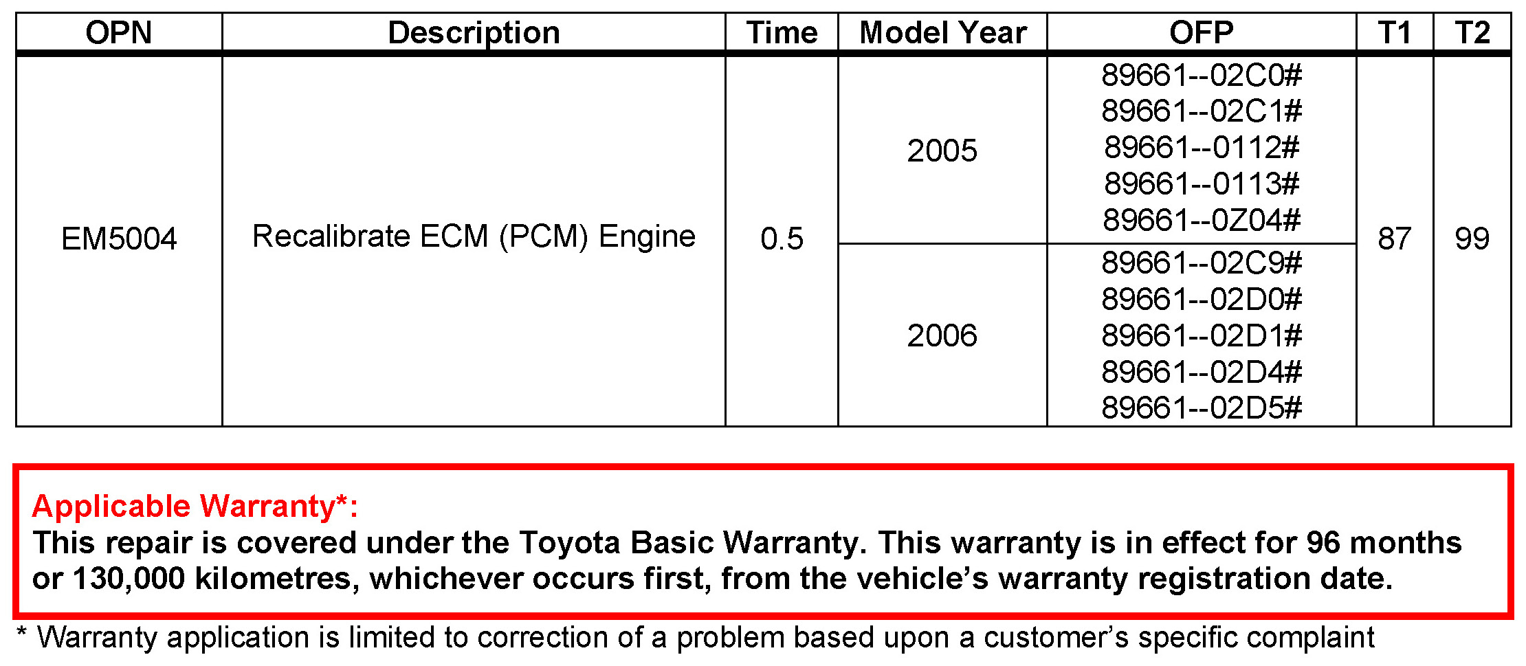 Home >> Toyota >> 2006 >> Matrix 2WD L4-1.8L (1ZZ-FE) >> Repair and Diagnosis >> Powertrain Management >> Computers and Control Systems >> Relays and Modules - Computers and Control Systems >> Engine Control Module >> Technical Service Bulletins >> Customer Interest >> Canada - Engine Controls - Extended Crank Time to Start