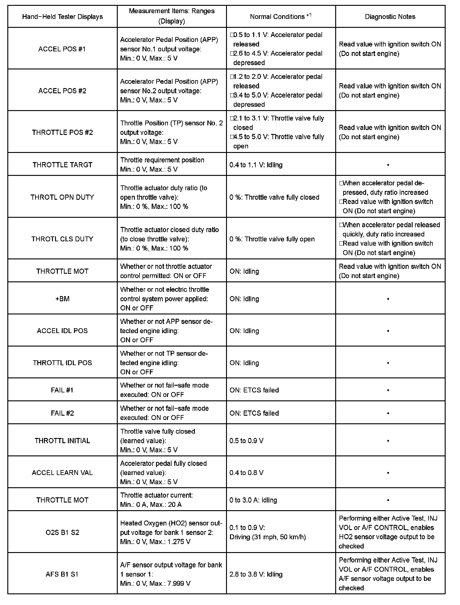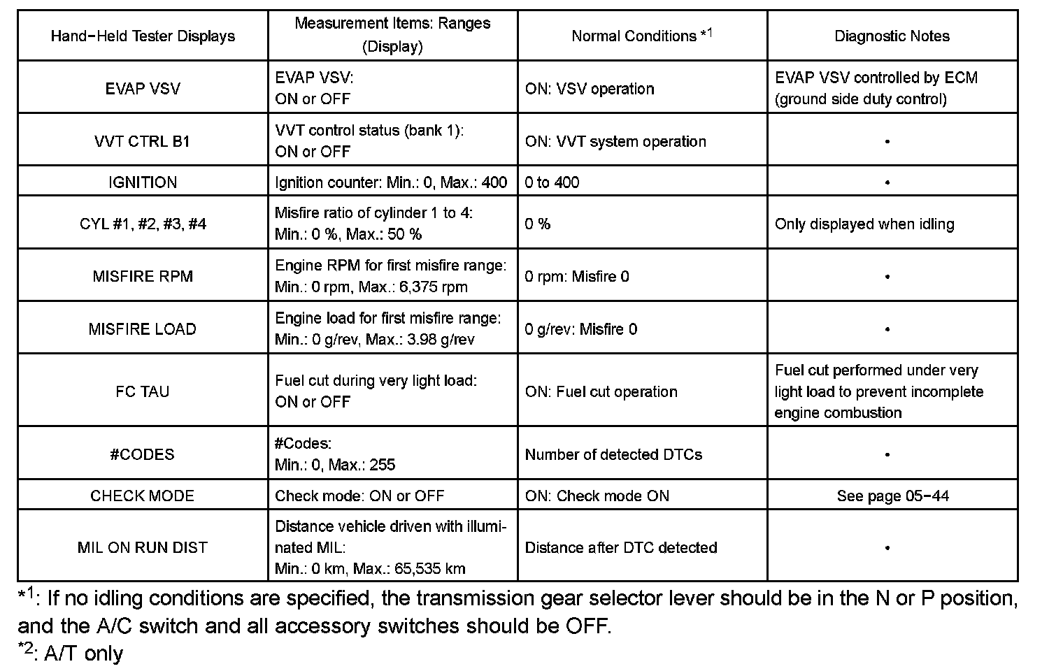 DATA LISTHINT: By reading the DATA LIST displayed on a hand-held tester or OBD II scan tool, you can check values, including those of the switches, sensors, and actuators, without removing any parts. Reading the DATA LIST as the first step of troubleshooting is one method of shortening diagnostic time.