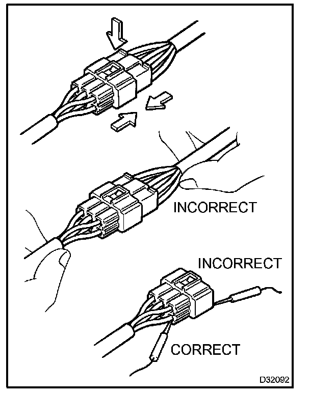 - As a waterproof connector cannot be checked from the backside, check by connecting a sub-harness.