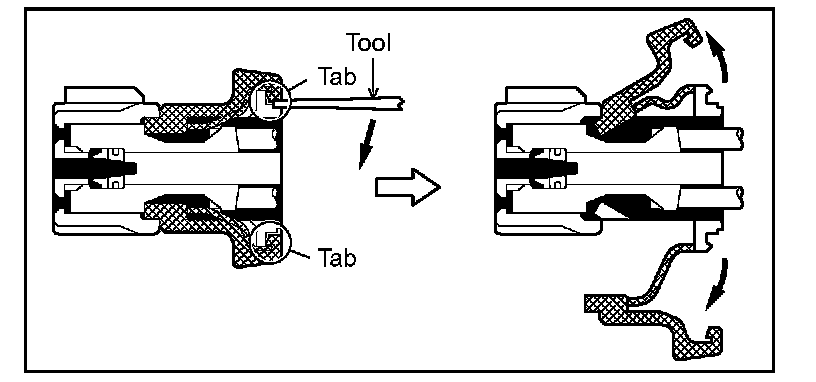 3. DISENGAGE THE SECONDARY LOCKING DEVICE OR TERMINAL RETAINER.