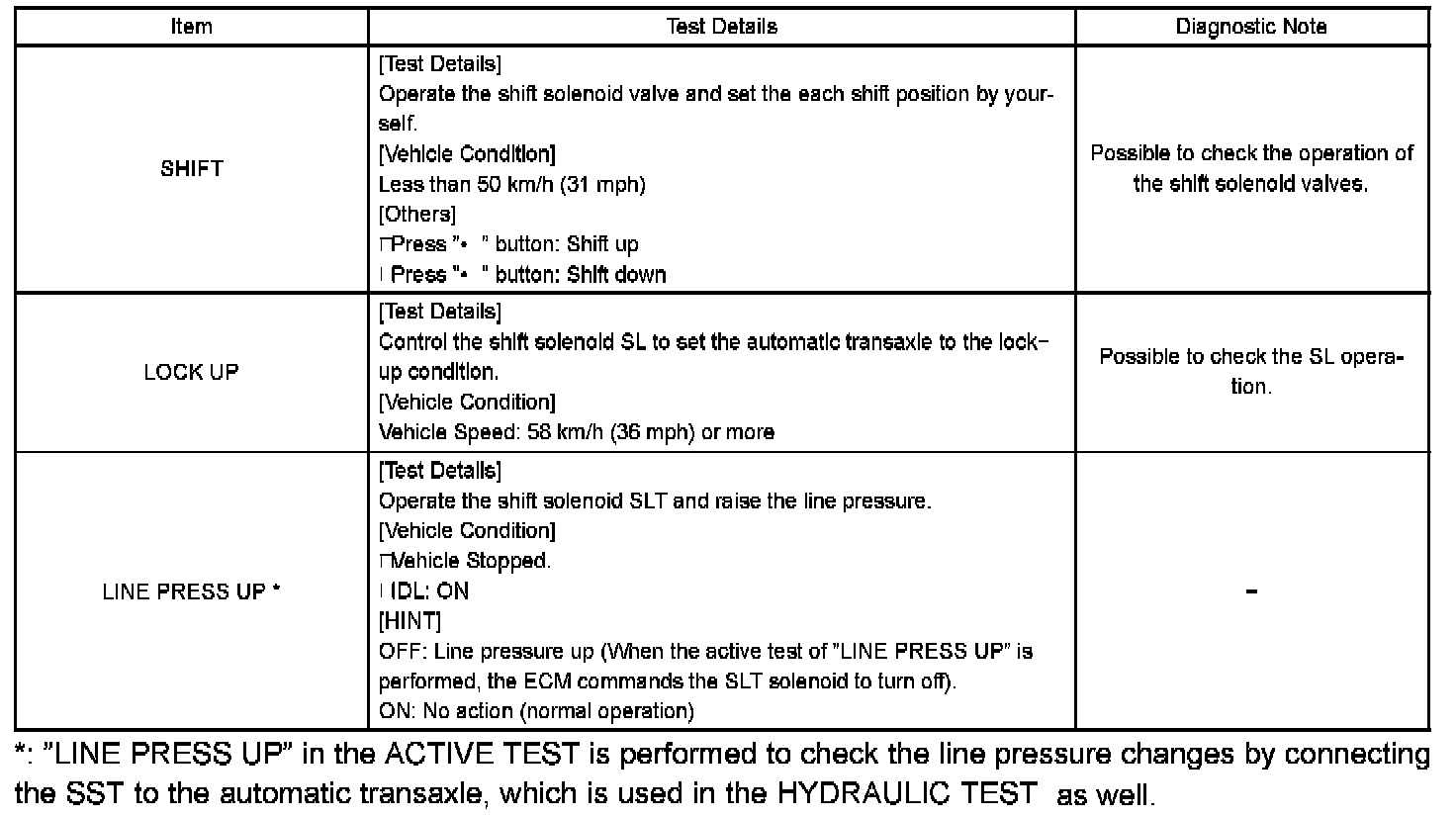 HINT: The pressure values in ACTIVE TEST and HYDRAULIC TEST are different from each other.