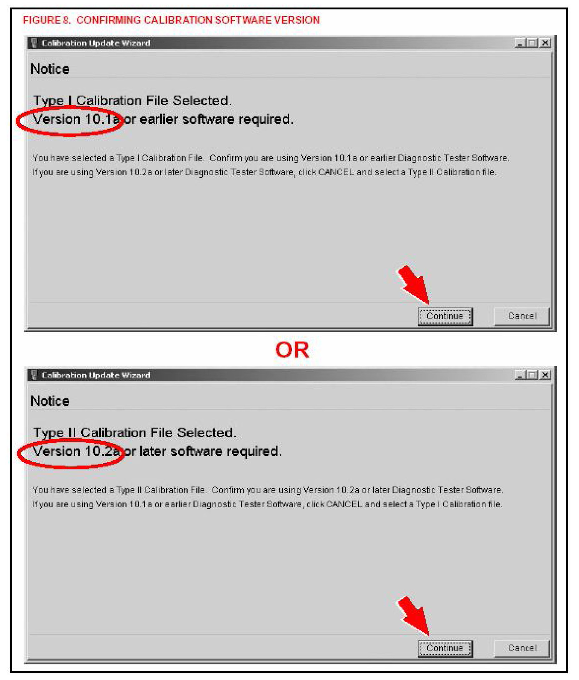 The calibration type is specific to the software version loaded on your Diagnostic Tester. If you selected the wrong version when downloading the calibration file, you will receive an error when attempting to install the file on the Diagnostic Tester.