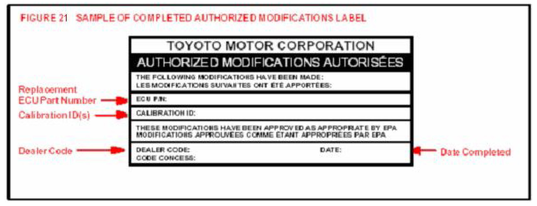 Modifications to ECU calibration files must be recorded and properly displayed on the vehicle using the calibration update sticker.
