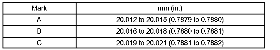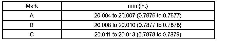 Piston pin outer diameter 20.004 to 20.013 mm (0.7876 to 0.7879 inch)