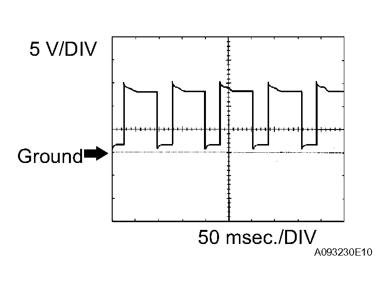 SPD (E5-17) - E1 (E3-5) V-W - BR Speed signal from combination meter Driving at 12 mph (20 km/h) Pulse generation (see waveform 11)