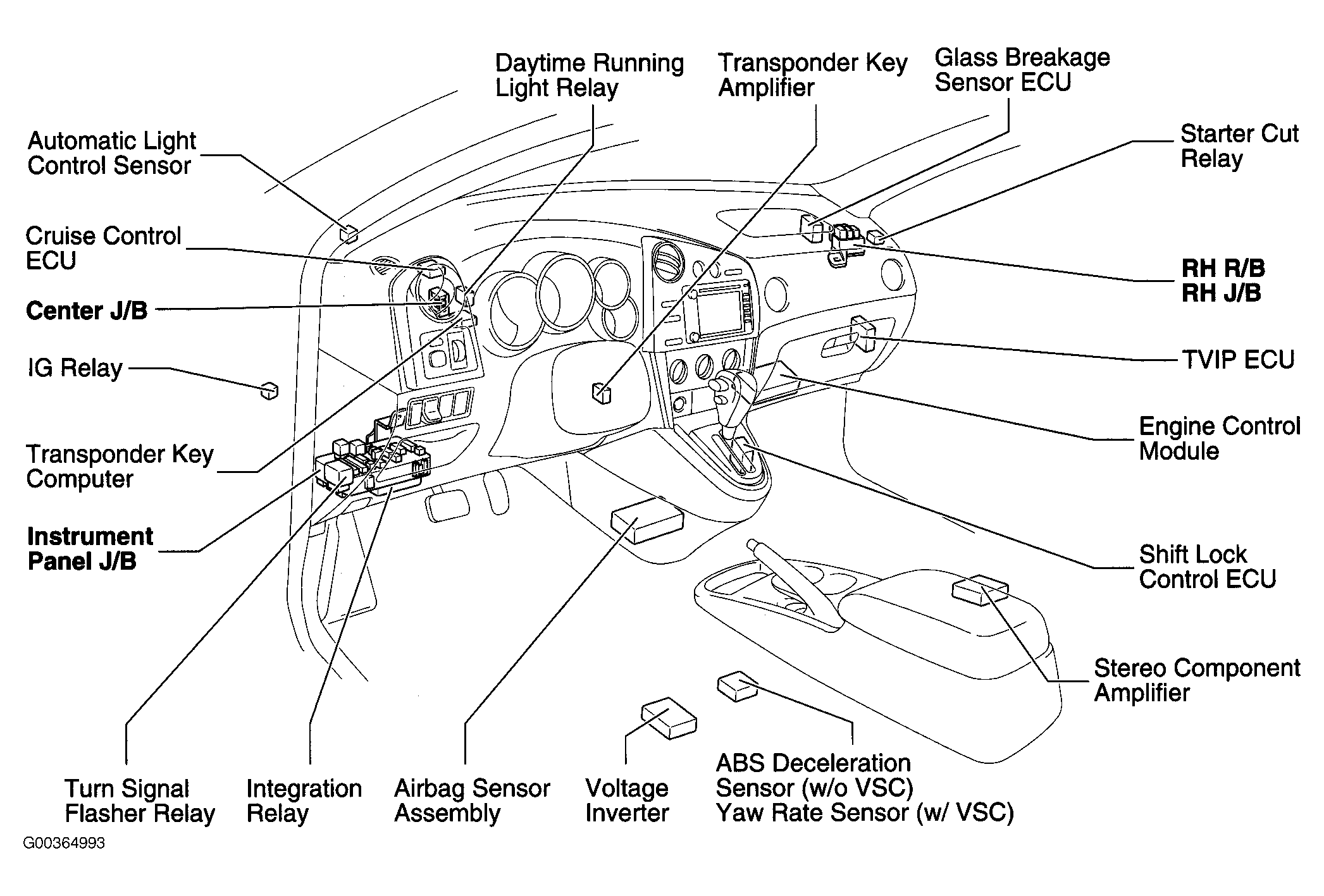 | RH J/B | Behind upper right side of dash. See Figure. |