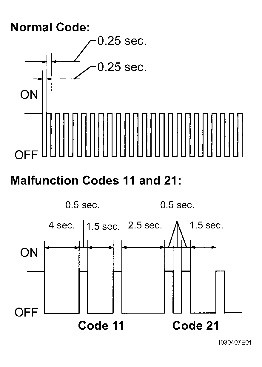 Fig 3: Example Blinking Patterns Of Normal Codes And Malfunction Codes 11 & 21