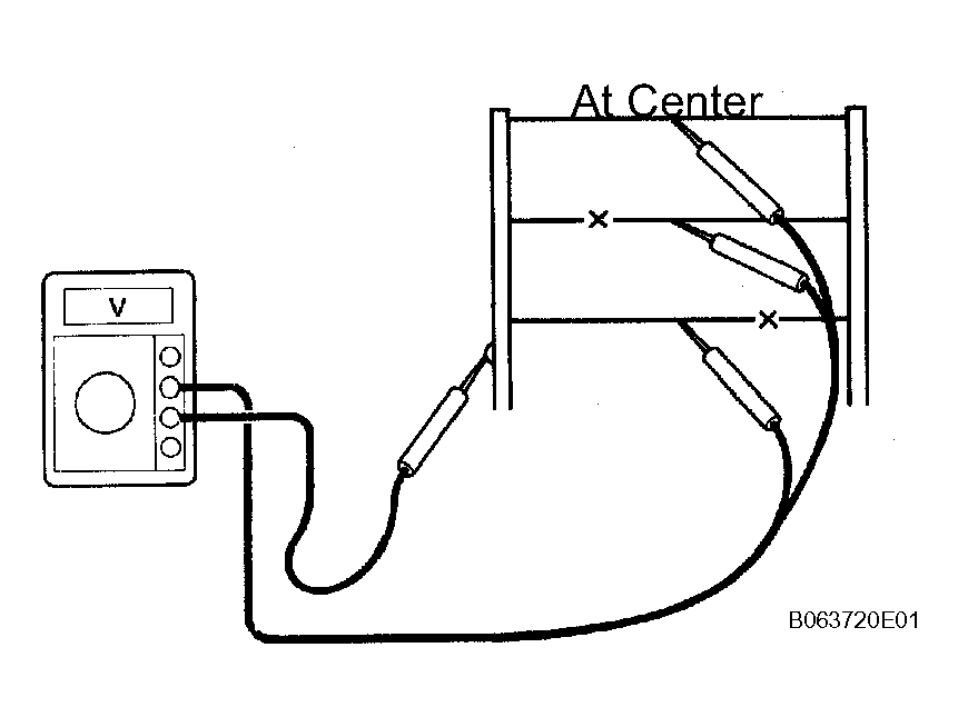 3. Inspect the voltage at the center of each defogger wire, as shown in Fig 2 .