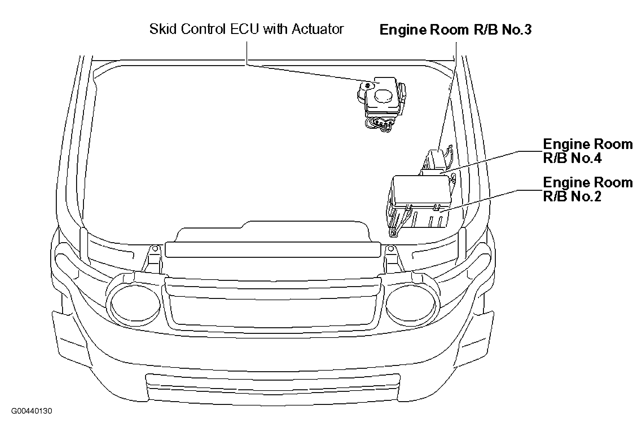 | Engine Room R/B No.2 | Left side of engine compartment. See Figure. |