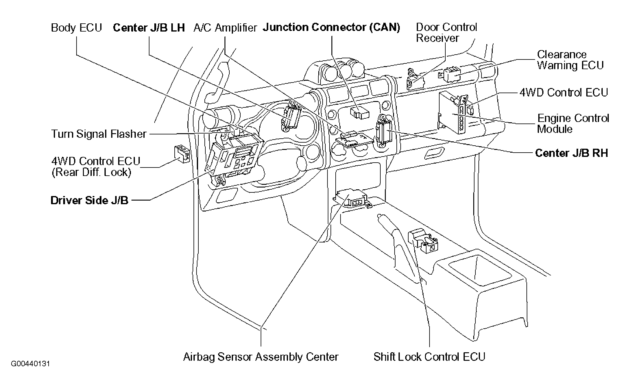 | Center J/B (Left) | Left side of dash. See Figure. |