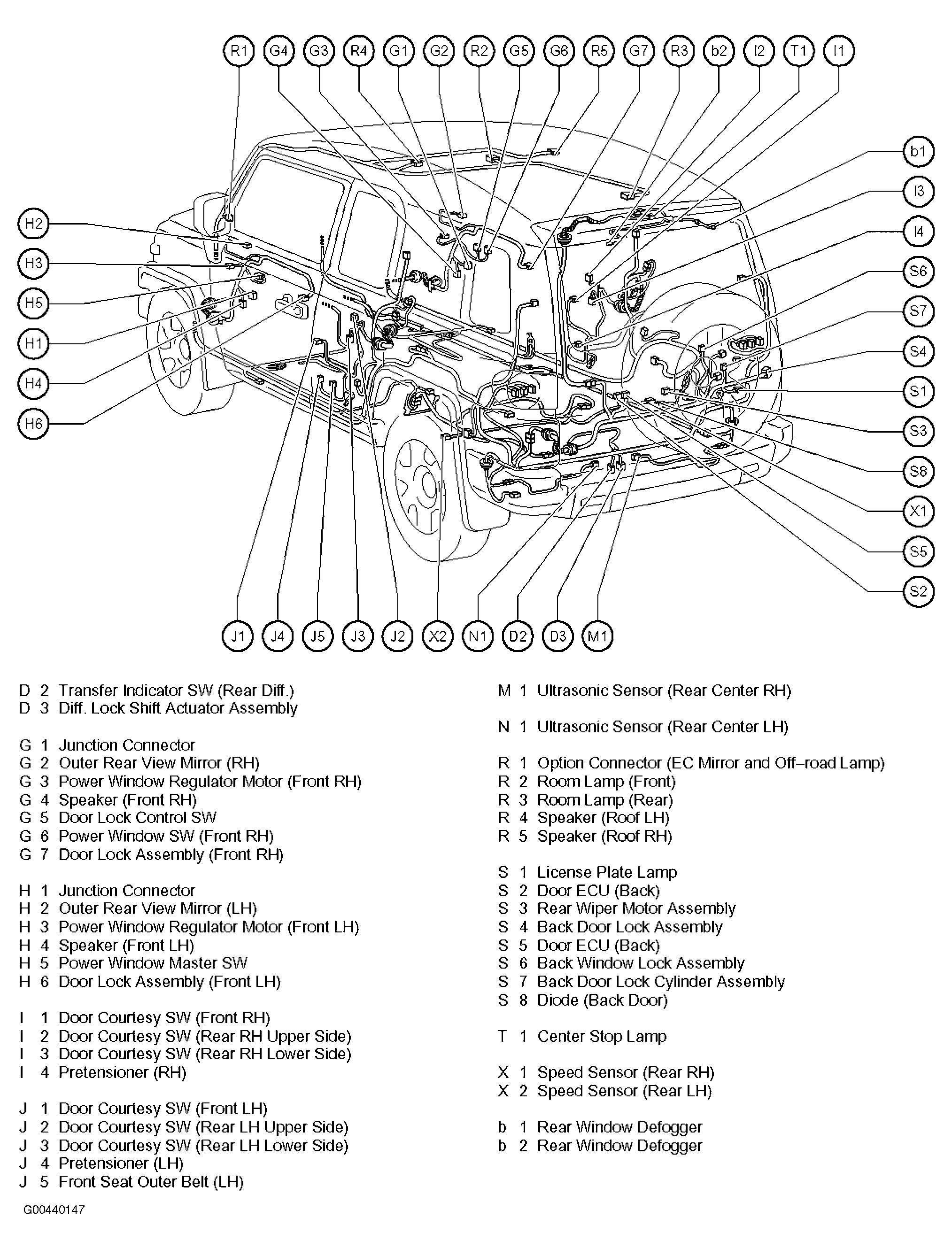 | Diode (Back Door) | In back door. See Figure. |