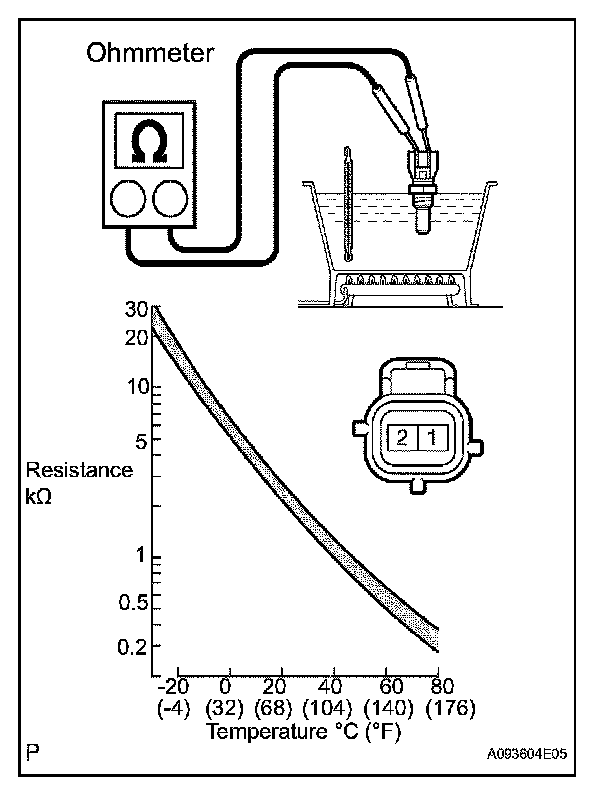 NOTE: If checking the engine coolant temperature sensor in water, be careful not to allow water to intrude into the terminals. After checking, wipe up water on the engine coolant temperature sensor.