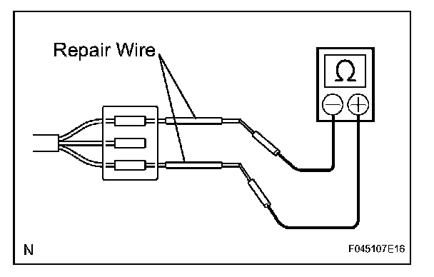 b. If it is impossible to check resistance from the back of the connector, use a repair wire to check it.