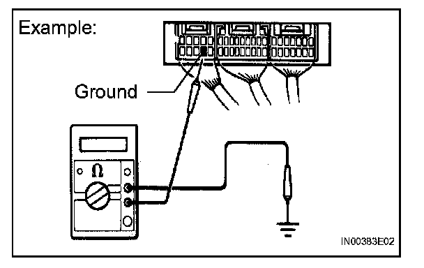 1. Measure the resistance between the ECU ground terminal and body ground.