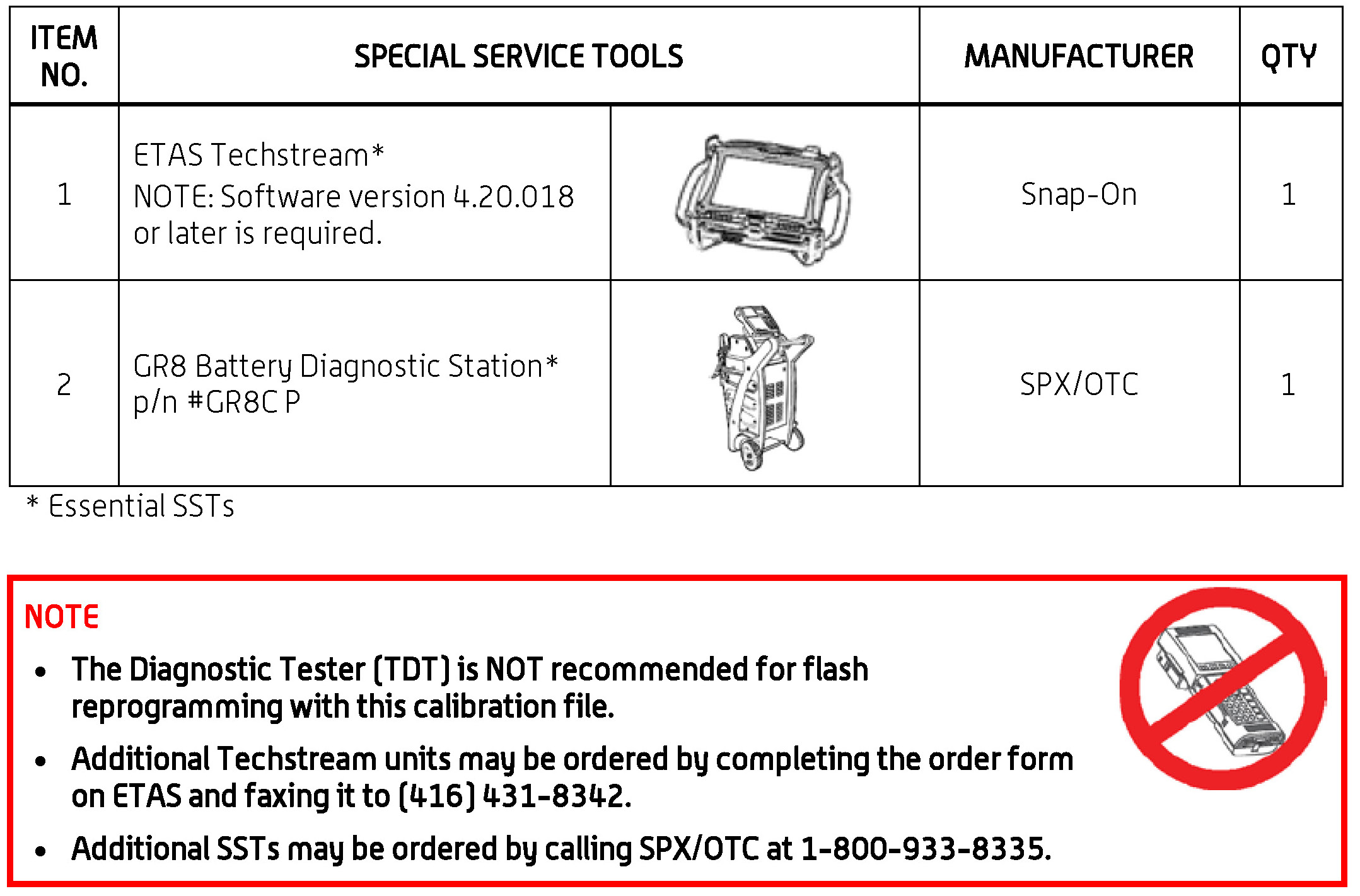 - For details on how to use the GR8 Battery Diagnostic Station, refer to the GR8 Battery Diagnostic Station Instruction Manual located on ETAS/TIS library > Tools > tools and equipment > GR8 Battery Diagnostic Station Instruction Manual.