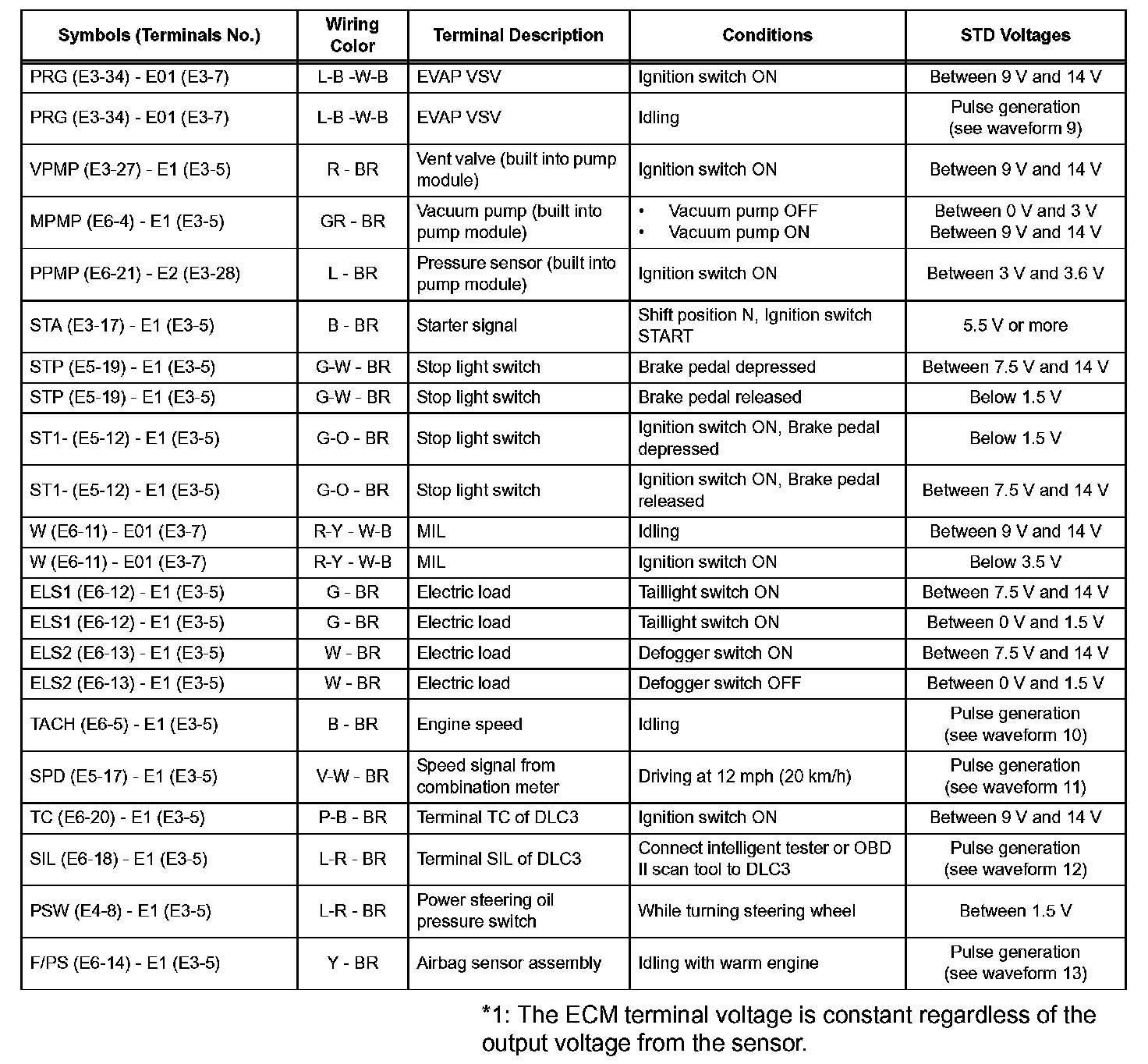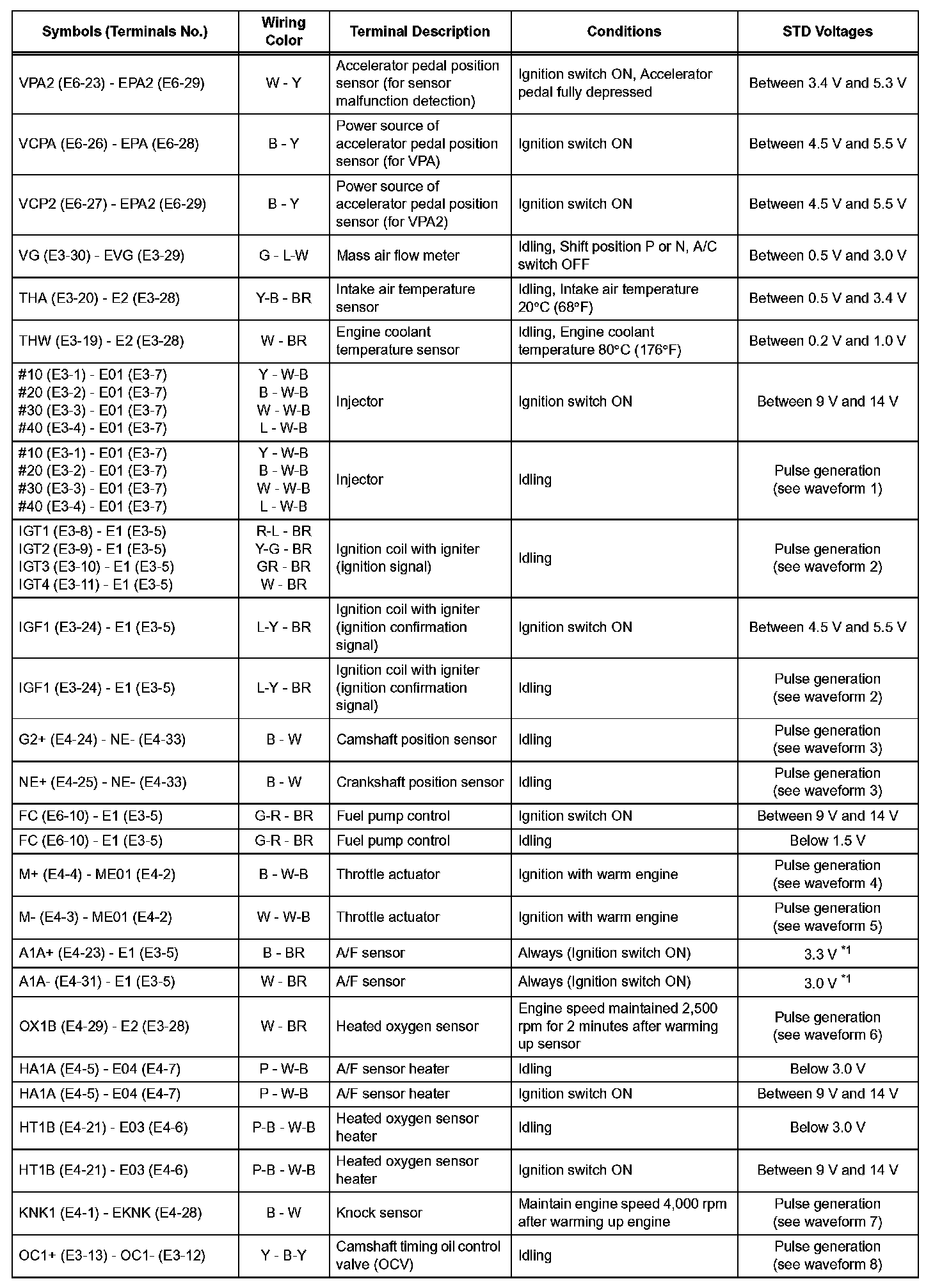 Home >> Toyota >> 2007 >> Matrix L4-1.8L (1ZZ-FE) >> Repair and Diagnosis >> Powertrain Management >> Relays and Modules - Powertrain Management >> Relays and Modules - Computers and Control Systems >> Engine Control Module >> Testing and Inspection >> Pinout Values and Diagnostic Parameters