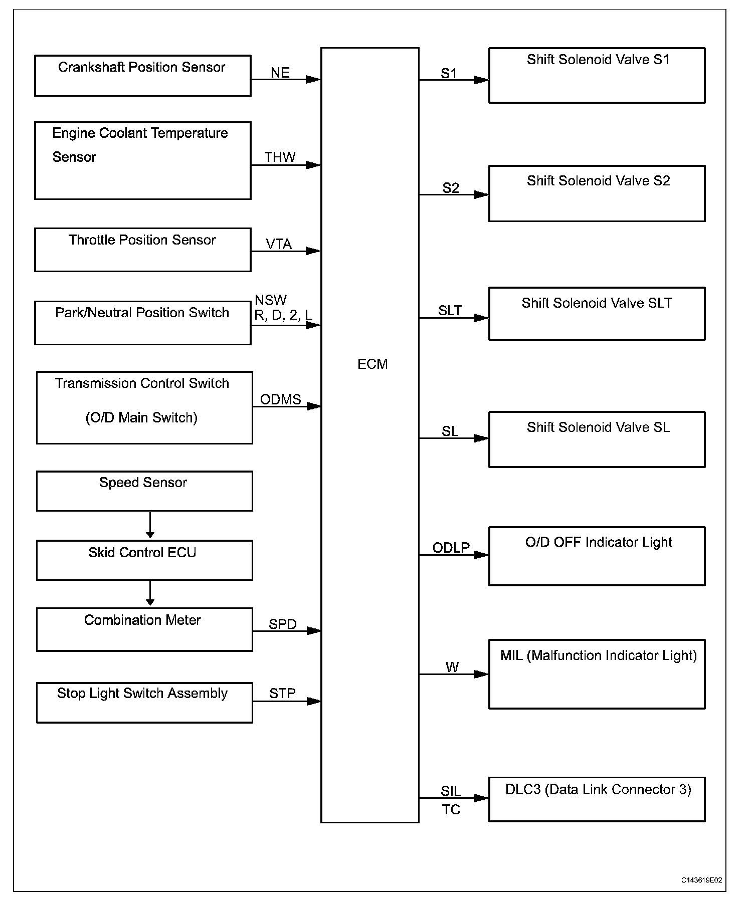 (a) The ECT (Electronic controlled automatic transmission/transaxle) is an automatic transmission/transaxle that electronically controls shift timing using the ECM. The ECM detects electrical signals that indicate engine and driving conditions, and controls the shift point, based on driver habits and road conditions. As a result, fuel efficiency and power transmission performance are improved.