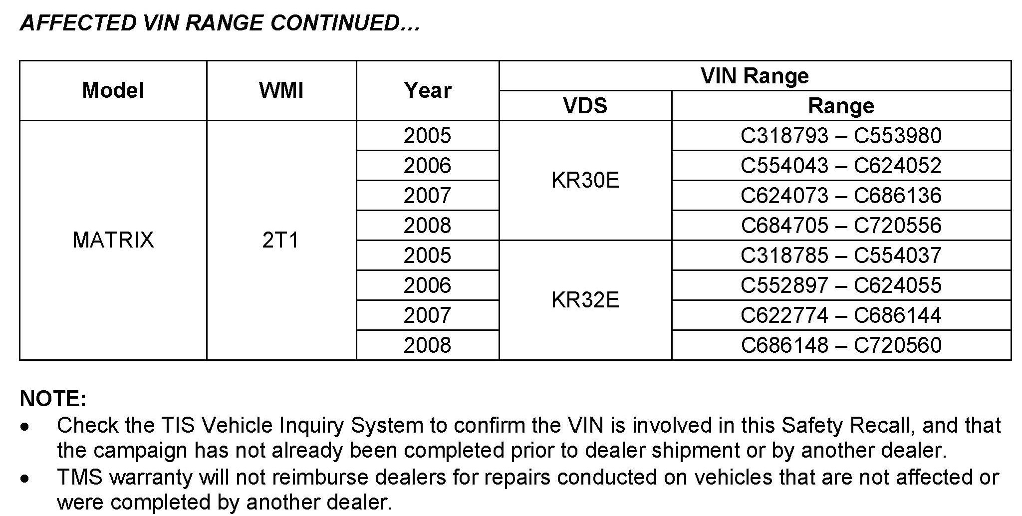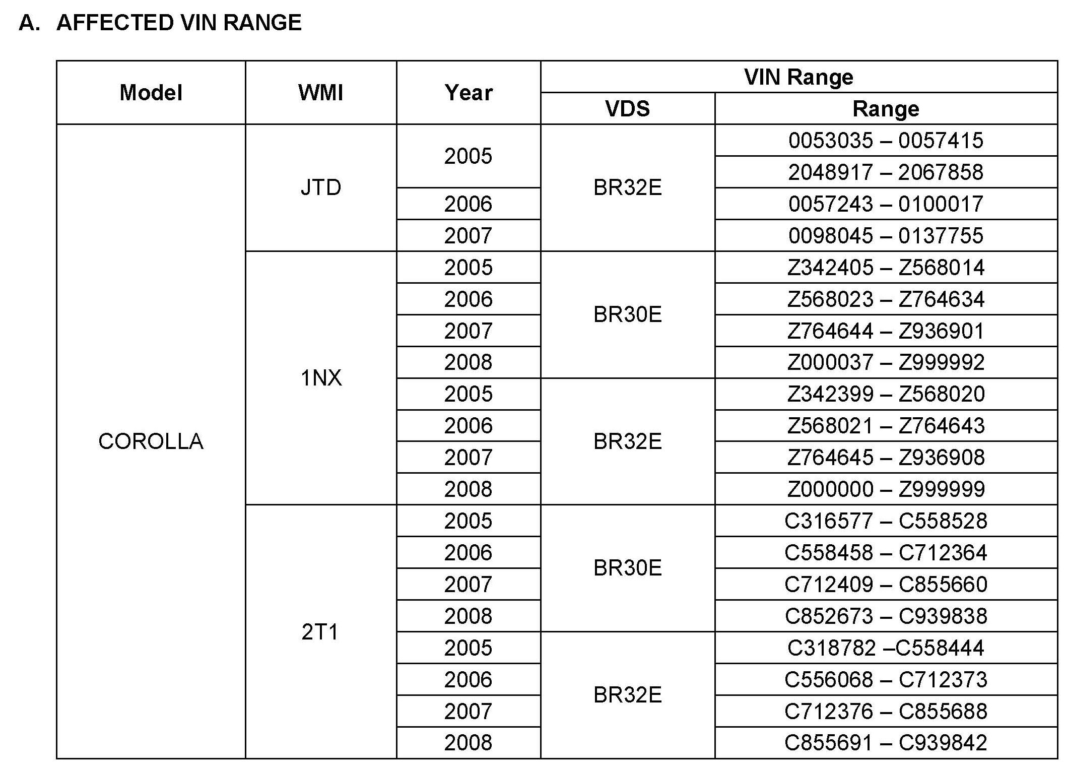 II. Identification of Affected Vehicles