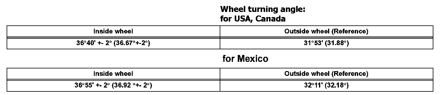 Wheel turning angle: