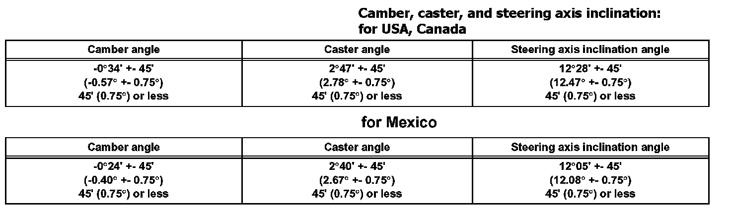 FRONT CAMBER, CASTER AND STEERING AXIS INCLINATION