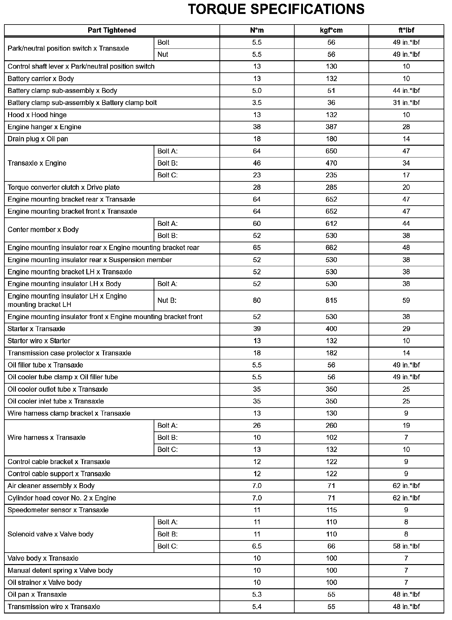 Automatic Transaxle - Torque Specifications (Part 1):