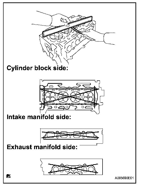 Using a precision straight edge and a feeler gauge, measure the surface that is in contact with the cylinder block and the manifolds for warpage.