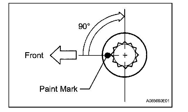 Check that the paint mark of each bolt is at 90° angle to the front.