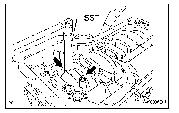 Using a dye penetrate, check the combustion chamber, intake ports, exhaust ports and cylinder block surface for cracks.