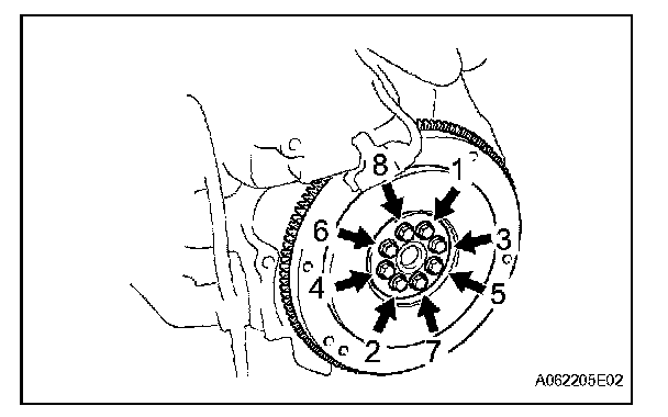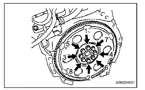 Using several steps, install and tighten the 8 bolts uniformly in the sequence shown in the illustration.